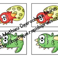 Il y a un total de 8 paires. Vous pouvez aussi rendre le jeu plus difficile en imprimant 3 cartes de chaque dinosaure! Ainsi, l’enfant ne devra pas trouver 2 cartes pareilles, mais bien 3!